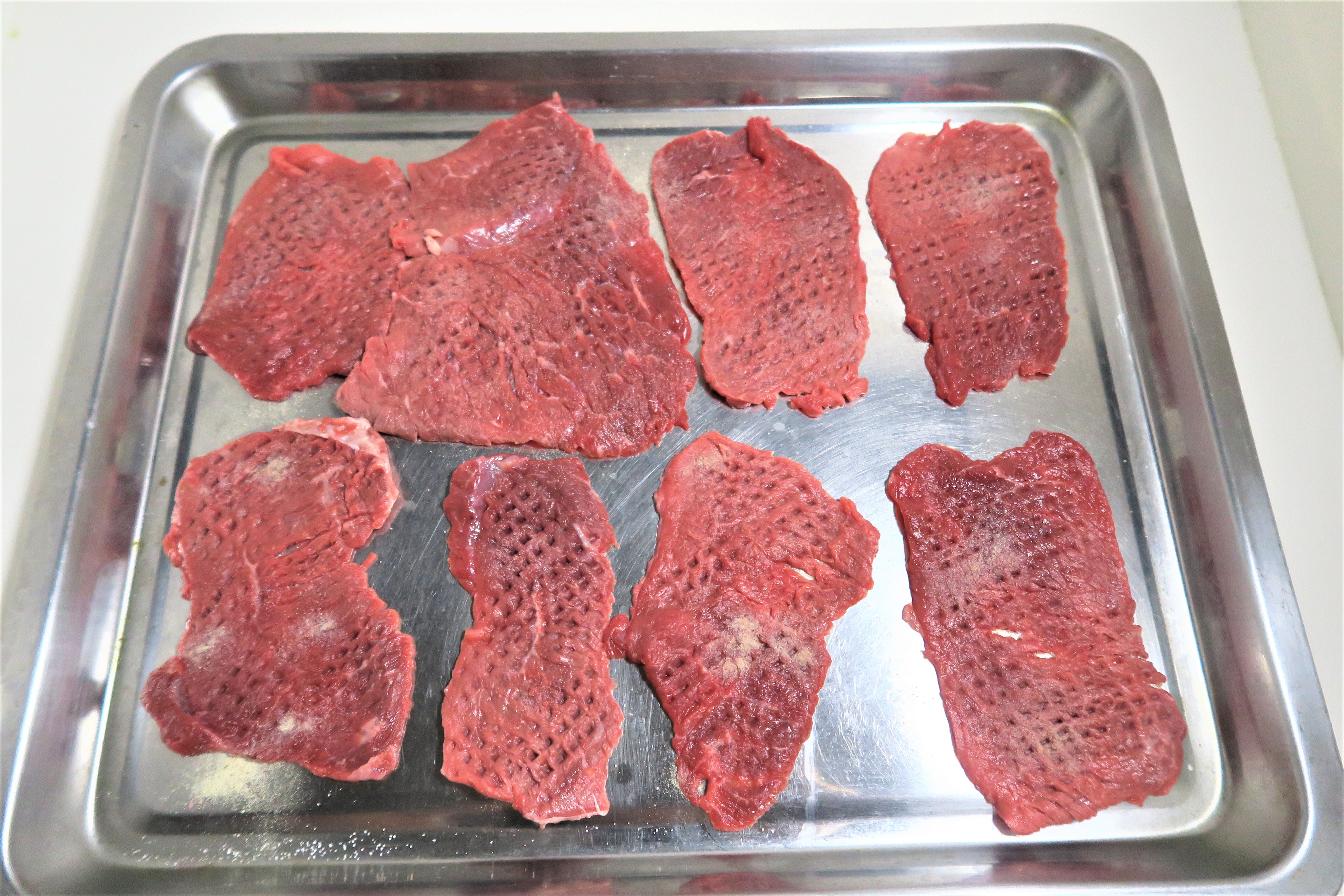 육전에 가장 기본이 되는 고기는 쇠고기 우둔살을 사용했어요.