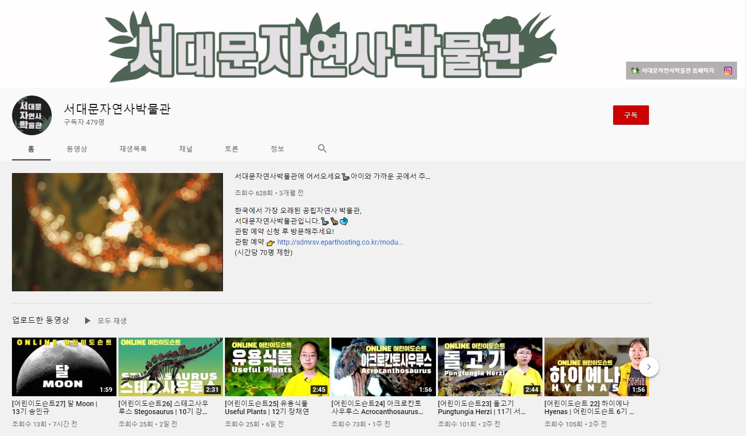 - 천체관측 동영상 보러가기 - 서대문자연사박물관 유튜브 채널 (※ 아래 사진 클릭)
