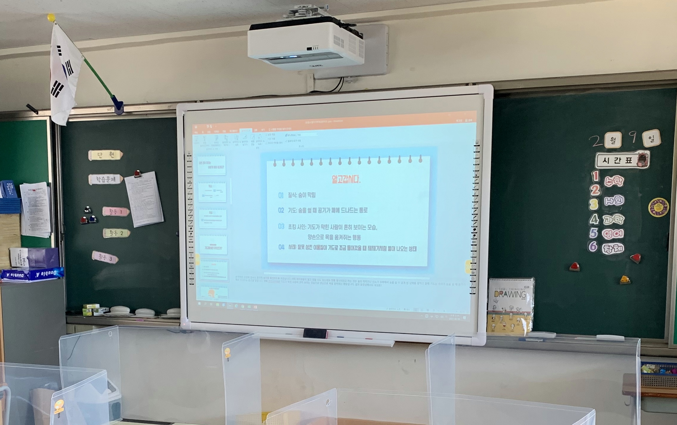 스마트교실 환경 구축과 원활한 온라인 학습 지원을 위한 전액 구비를 들여 추진하였습니다. 새로 설치된 전자칠판은 등교수업과 원격수업에 활용됩니다.