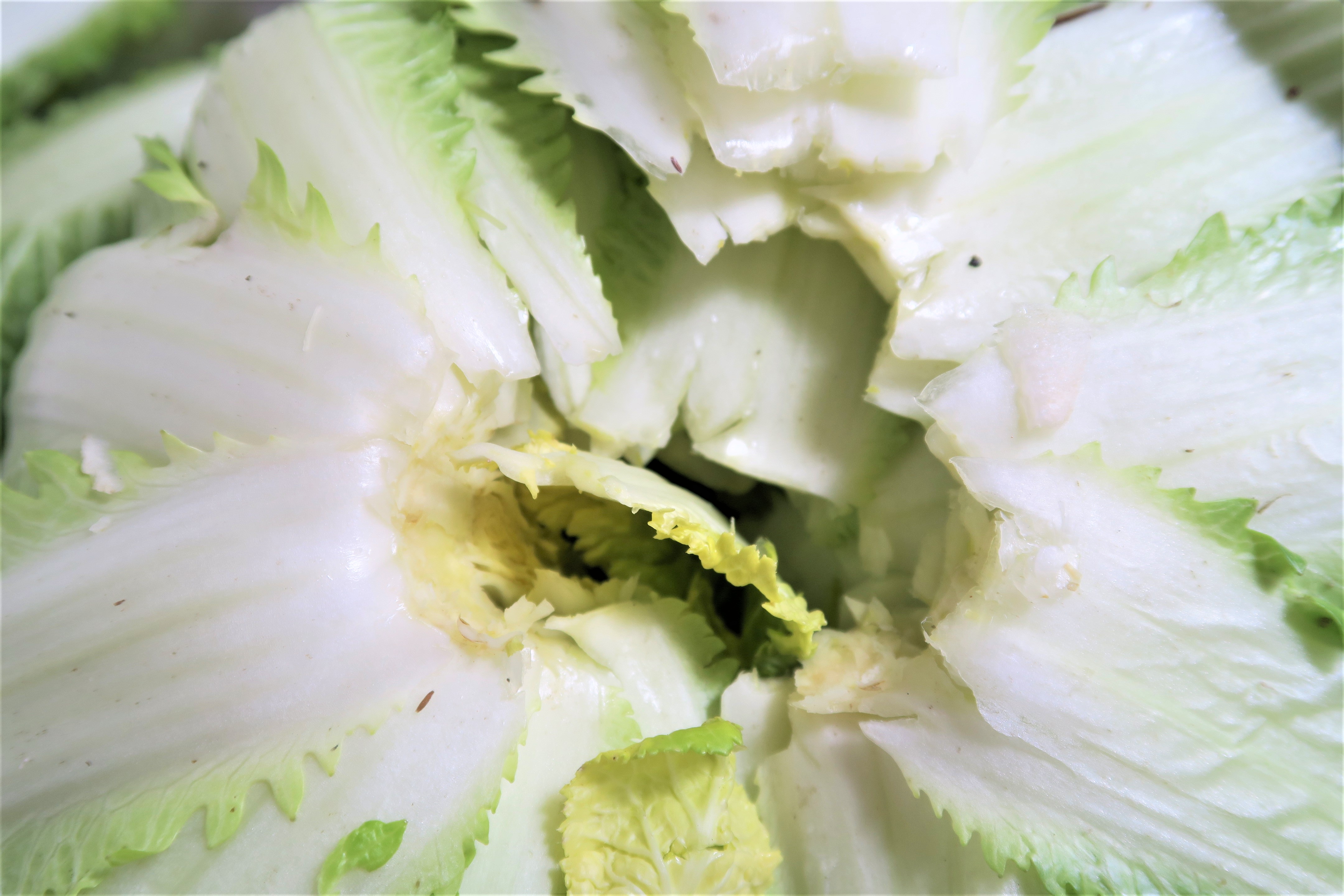 봄동 밑동을 칼로 동그랗게 파주세요. 그러면 봄동 이파리를 쉽게 분리할 수 있습니다.