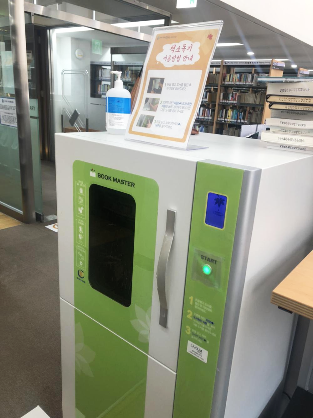 입고되는 책들과 출고되는 책들을 소독할 수 있는 책 소독기도 구비되어 있어요.