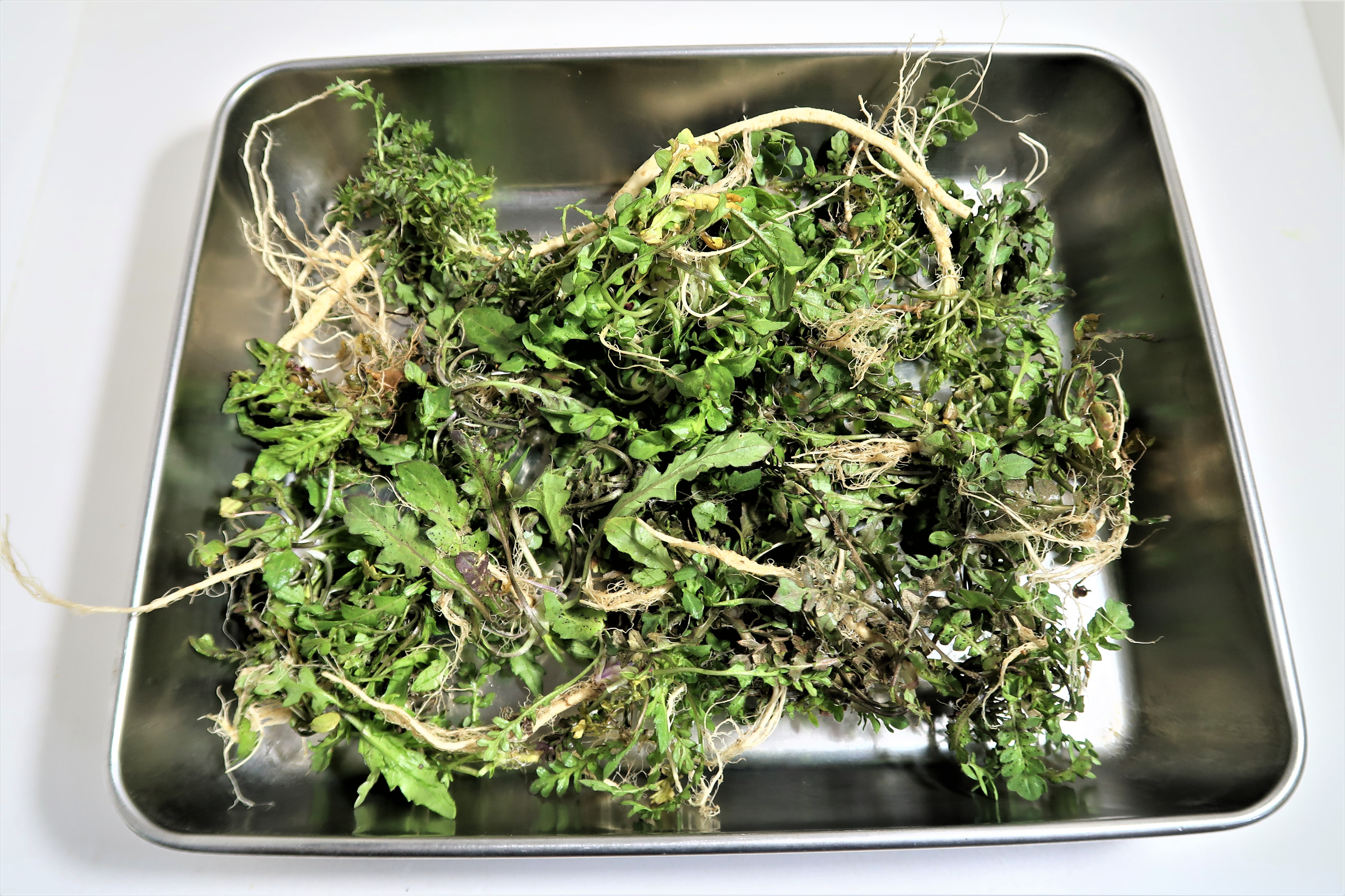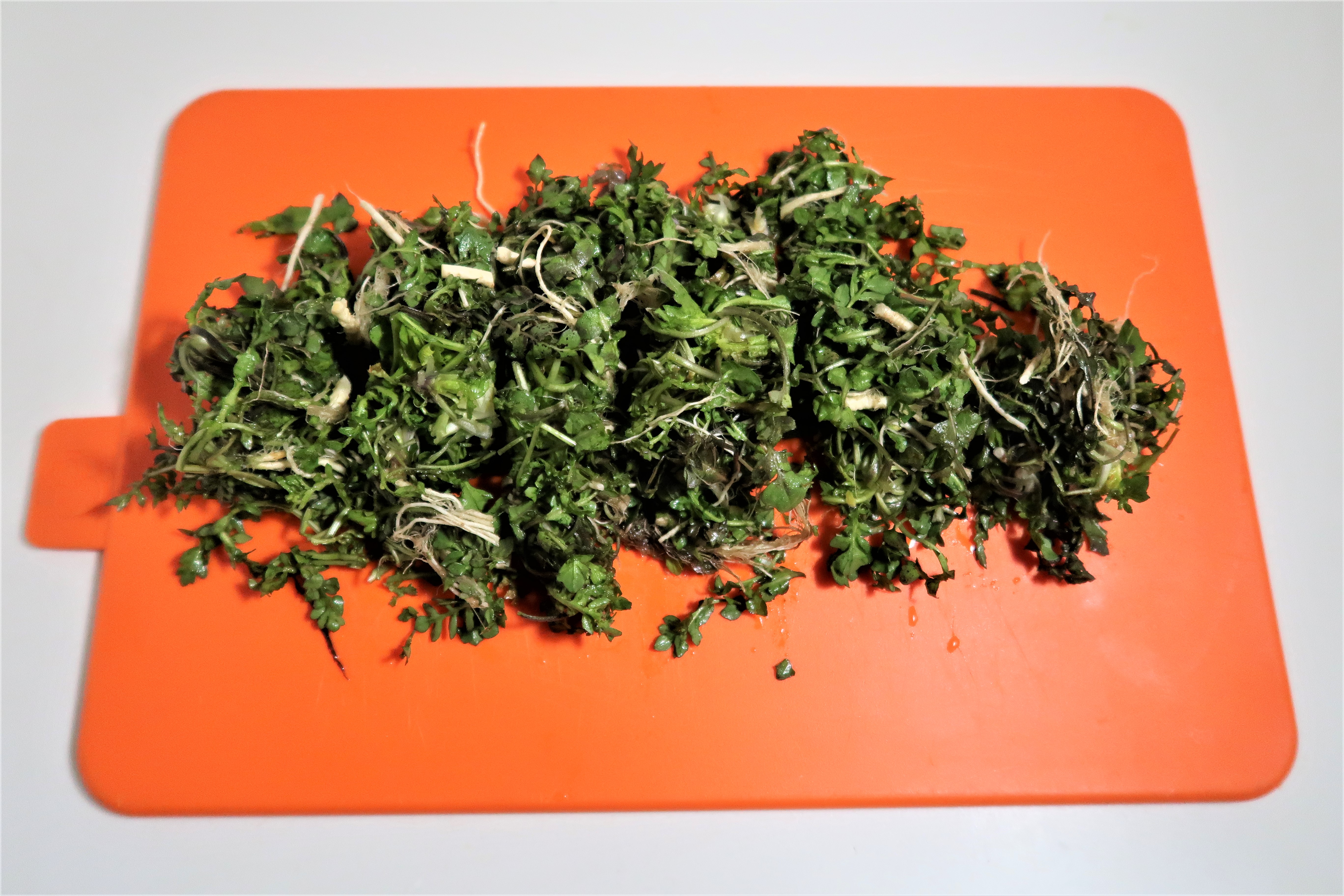 씻은 냉이를 먹기 좋게 잘라주세요.
