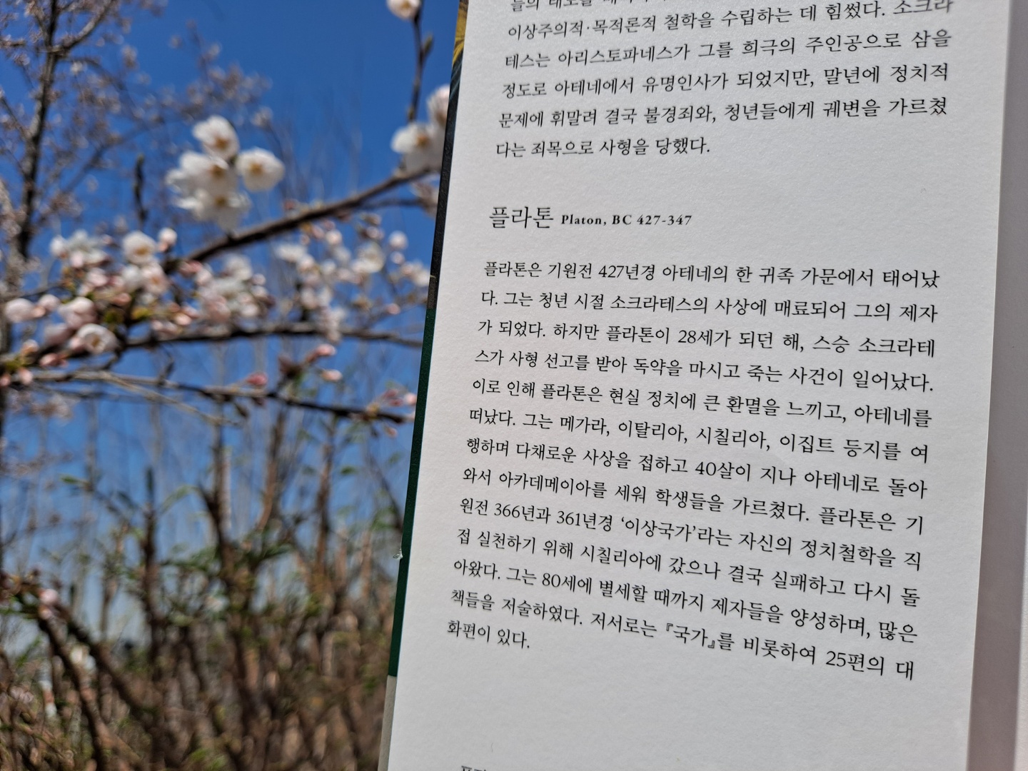 플라톤이 쓴 이 책은 너무나 유명하지만 정작 책을 다 읽은 사람은 많지 않은 게 사실이지요. 거의 40여 년 전에 읽은 이 책을 다시 읽으면서 심오한 소크라테스의 사상에 매료되었어요.