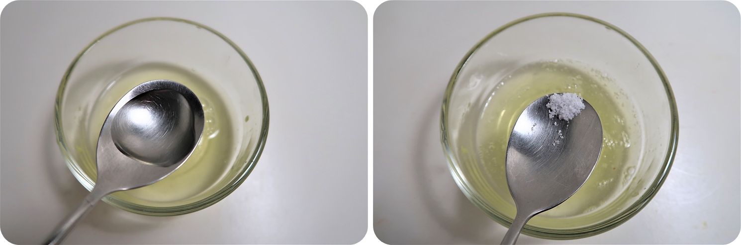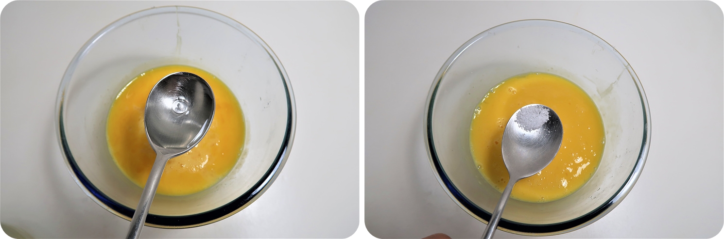 노른자에 맛술 1큰술과 꽃소금 약간을 넣어 잘 저어주세요.