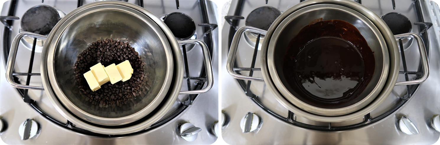 먼저 다크 초콜릿과 버터는 중탕으로 녹여주세요.