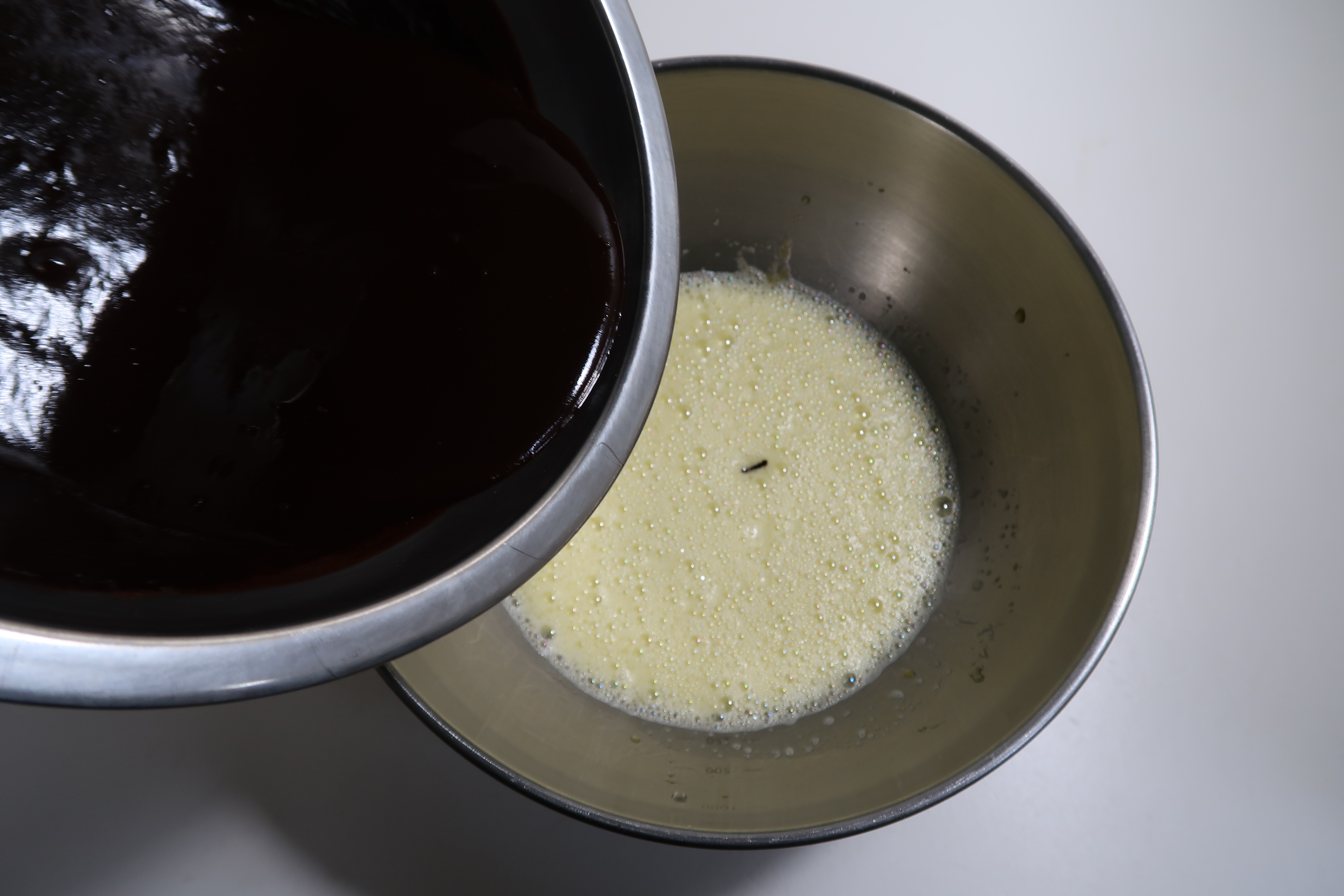 녹인 초콜릿과 버터는 약간 식혀준 뒤 거품낸 달걀물에 조금씩 넣어가며 섞어주세요.