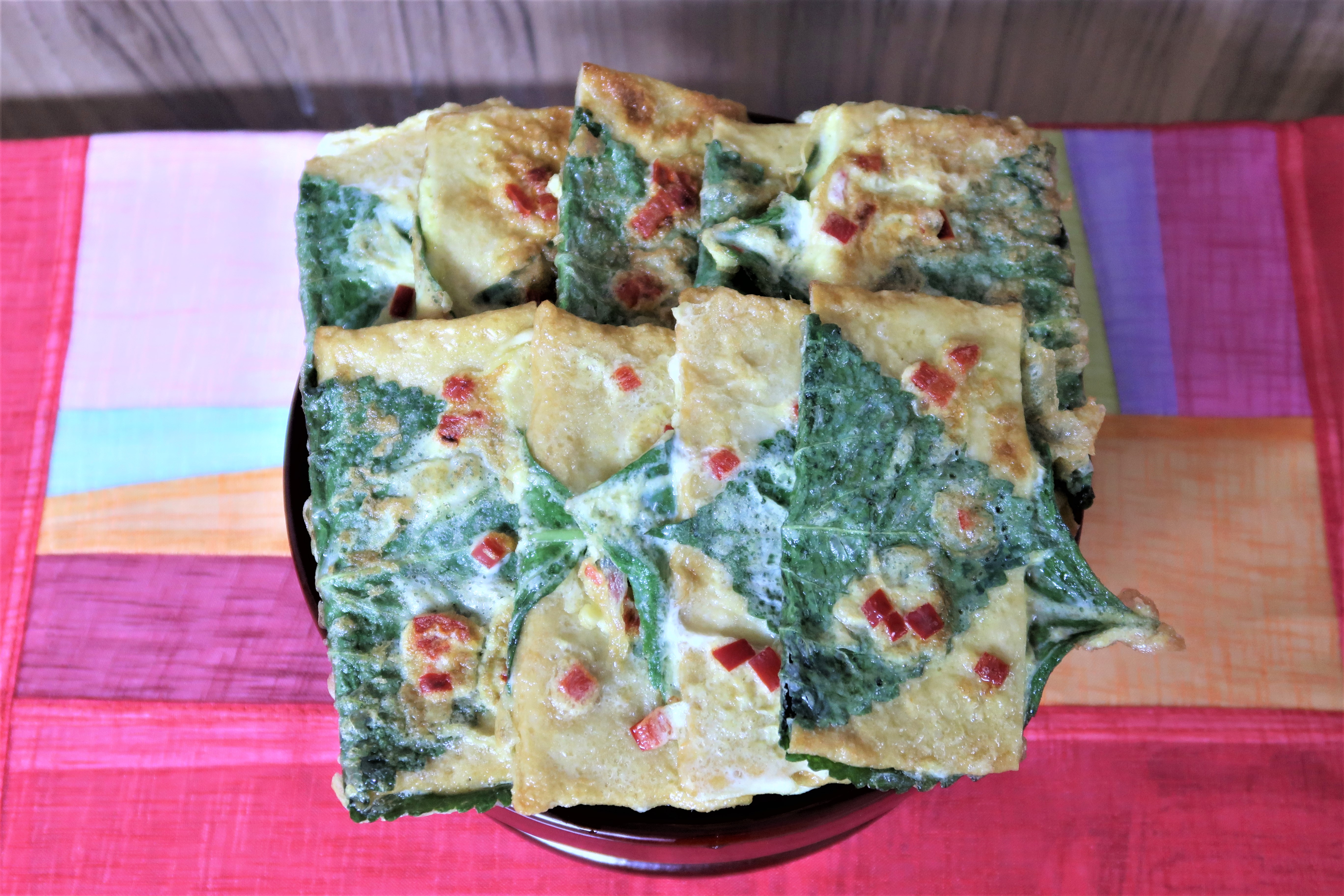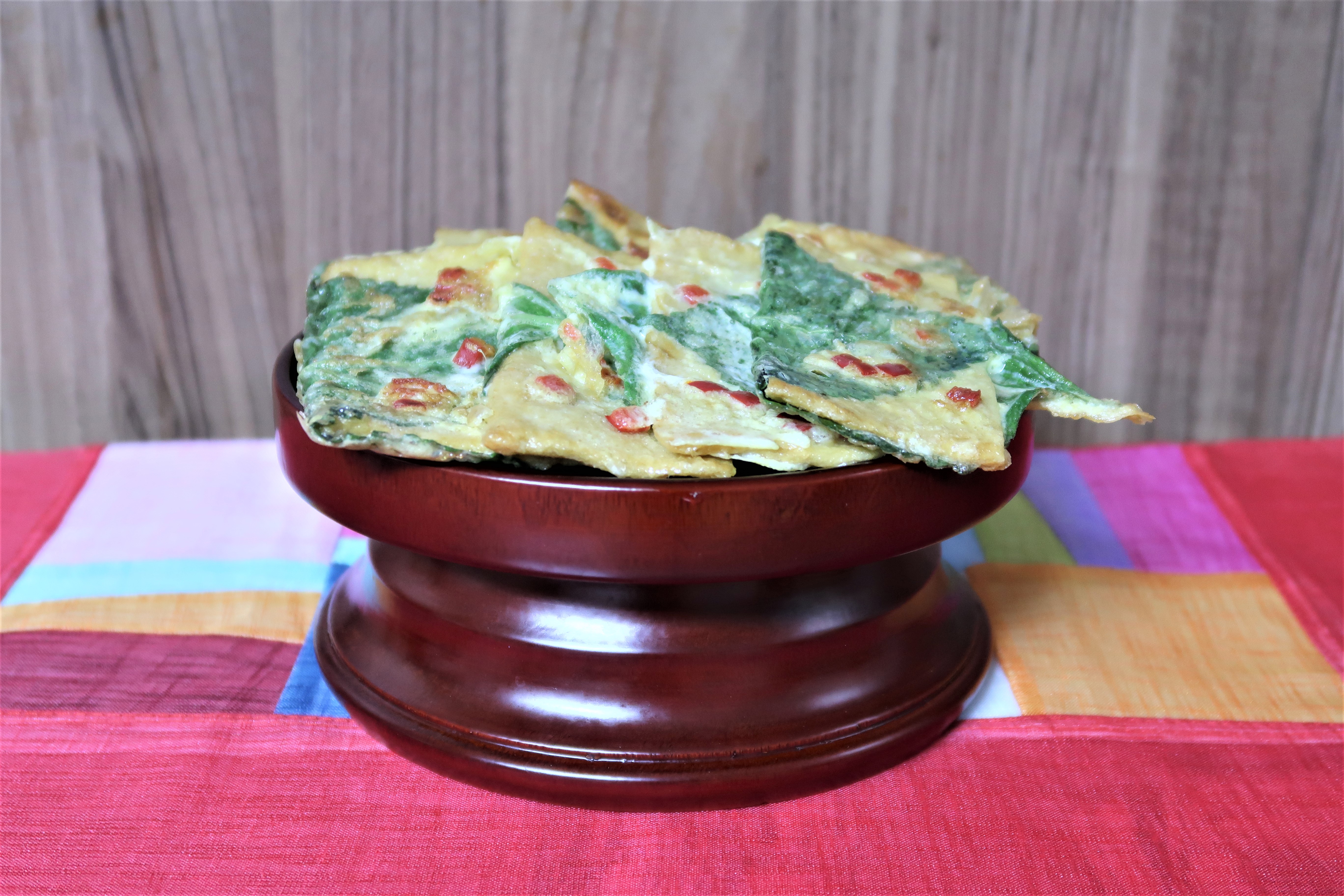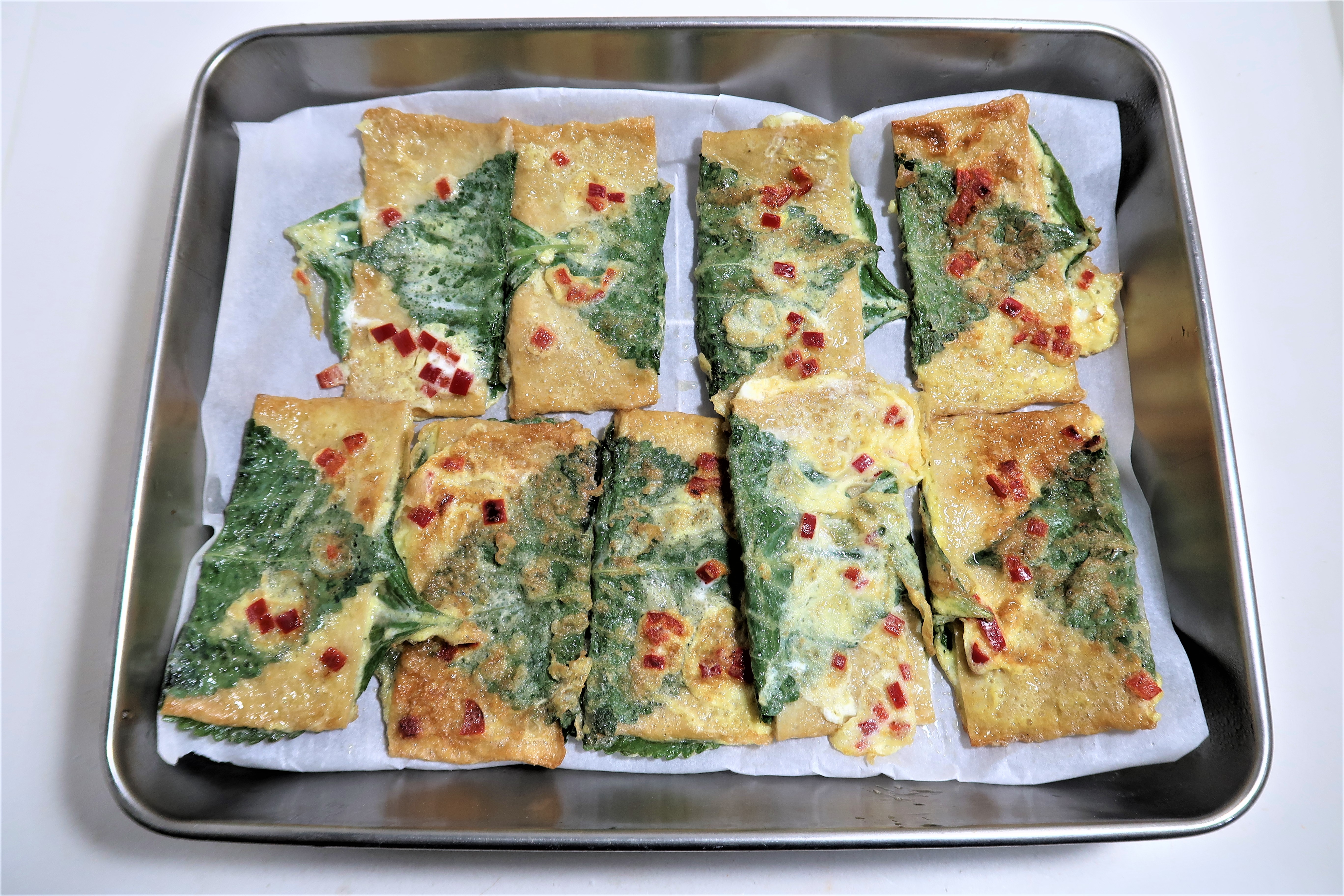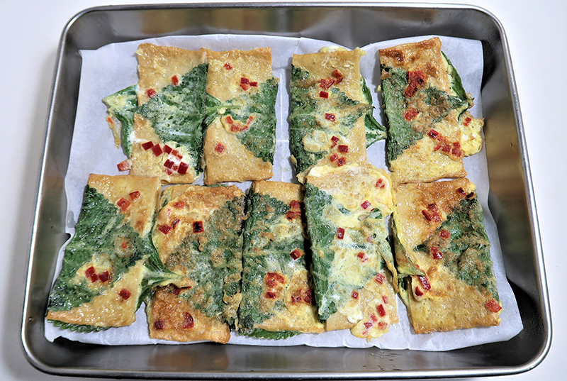 홍고추를 곱게 썰수록 계란물에 잘 붙어요.