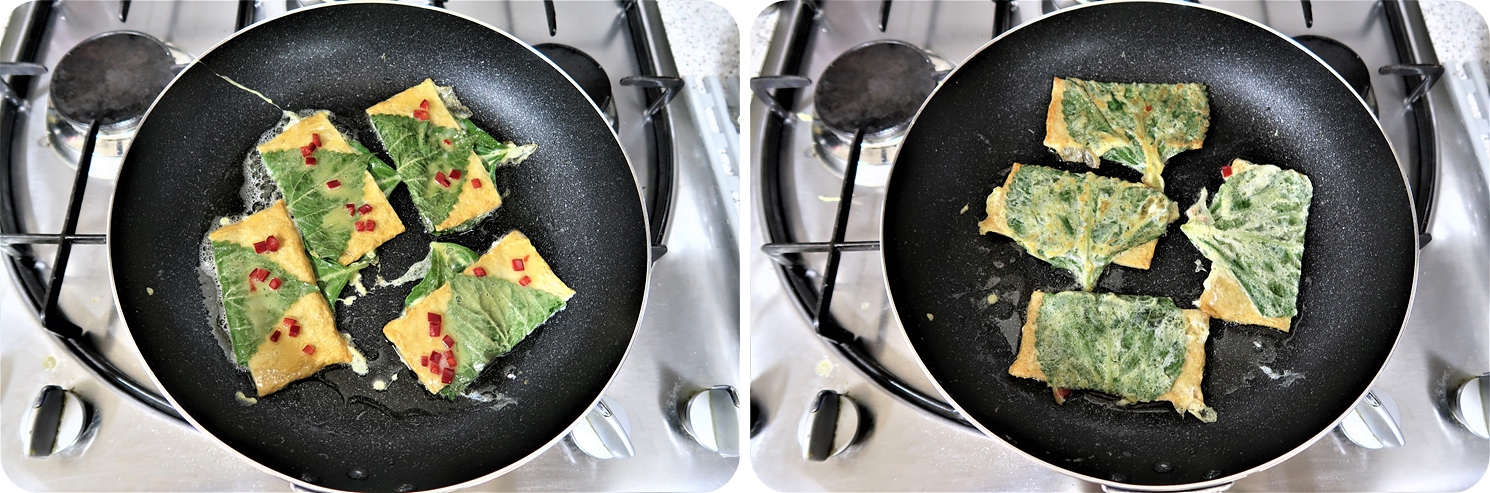 그리고 아까 준비한 계란물을 앞뒤로 묻혀 주세요.