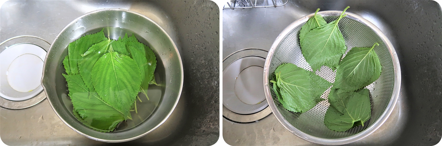 다음으로 깻잎을 준비해주세요.