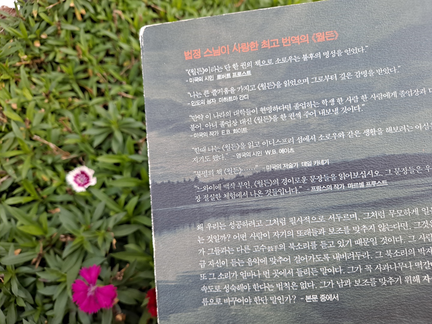 앞만 보고 바쁘게 살다 보니 어느새 황혼 녘에 서 있는 경우가 참으로 많습니다. 얽매임 없이 자유로운 삶을 위한 첫걸음은 많이 소유하지 않은 게 아닐까요? 물질에 대한 욕망을 내려놓을 때 우리는 편안해지는 자신을 발견합니다. 소박하게 산다면 절도나 강도는 존재하지 않을 것이라는 확신 속에서 살았던 소로우의 정신에서 마치 초록숲이 뿜어내는 듯한 기운을 느낍니다.