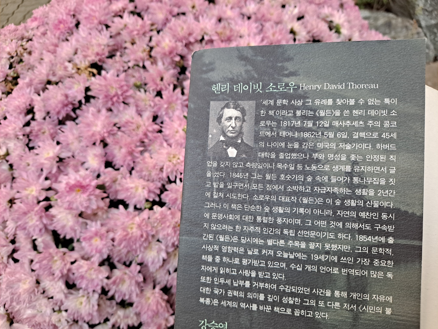 <월든>은 헨리 데이빗 소로우가 28세부터 30세까지 콩코드에 있는 월든 호숫가의 숲 속에 들어가 통나무집을 짓고 살았던 2년여의 생활기록이자 자신의 내면 기록을 써 내려간 책입니다. 깊은 성찰과 따스한 울림을 주는 좋은 글을 쓴 저자가 폐결핵으로 45세의 나이에 세상을 떠난 것이 많이 안타깝습니다.