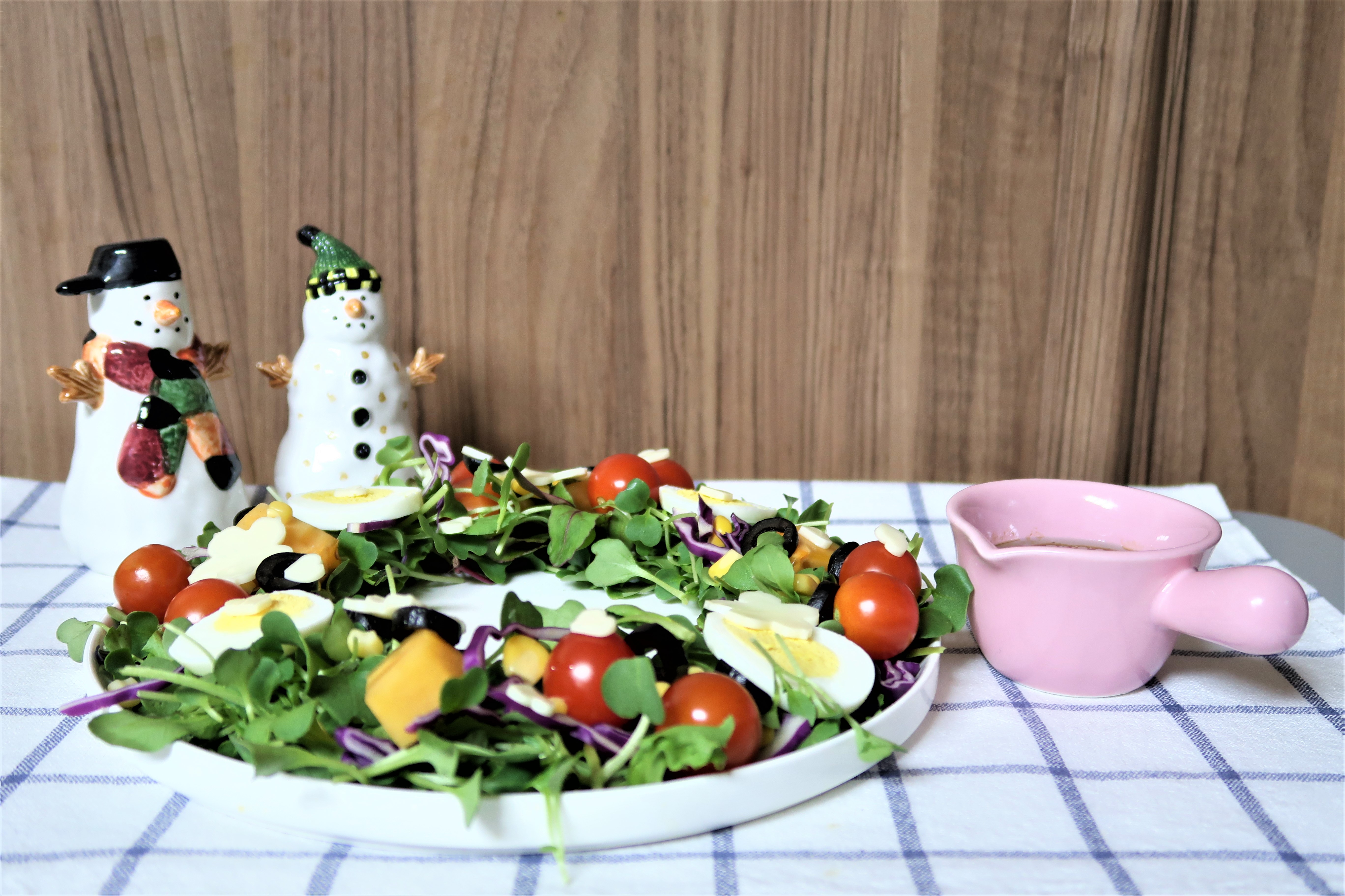 또한 환영이라는 의미도 있어서 크리스마스에 사람들을 집으로 초대하면서 환영한다는 의미로 걸어두기도 합니다. 오늘은 크리스마스 리스 샐러드를 만들어 볼게요.
