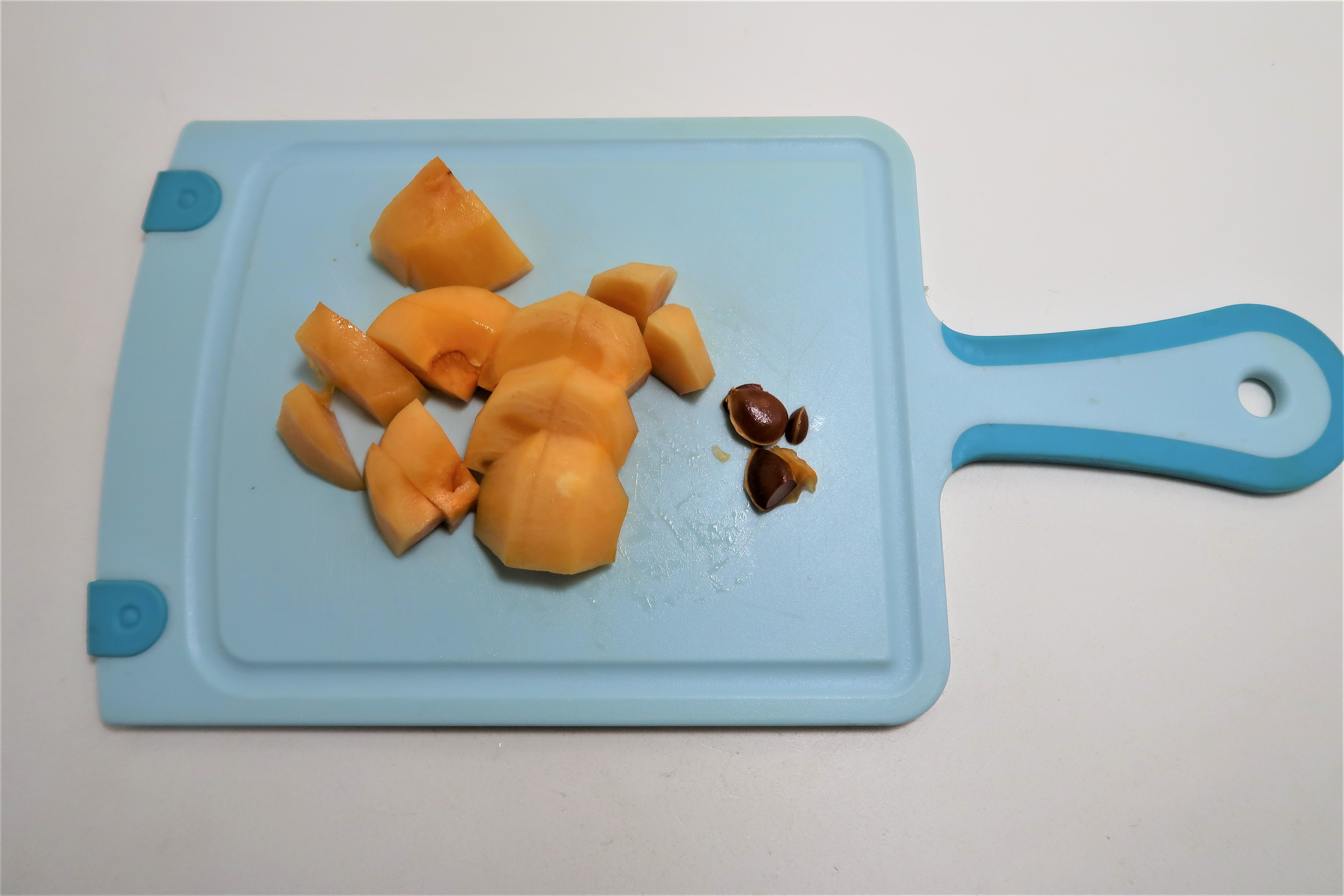 단감은 씨를 제거하고 먹기 좋게 썰어주세요.