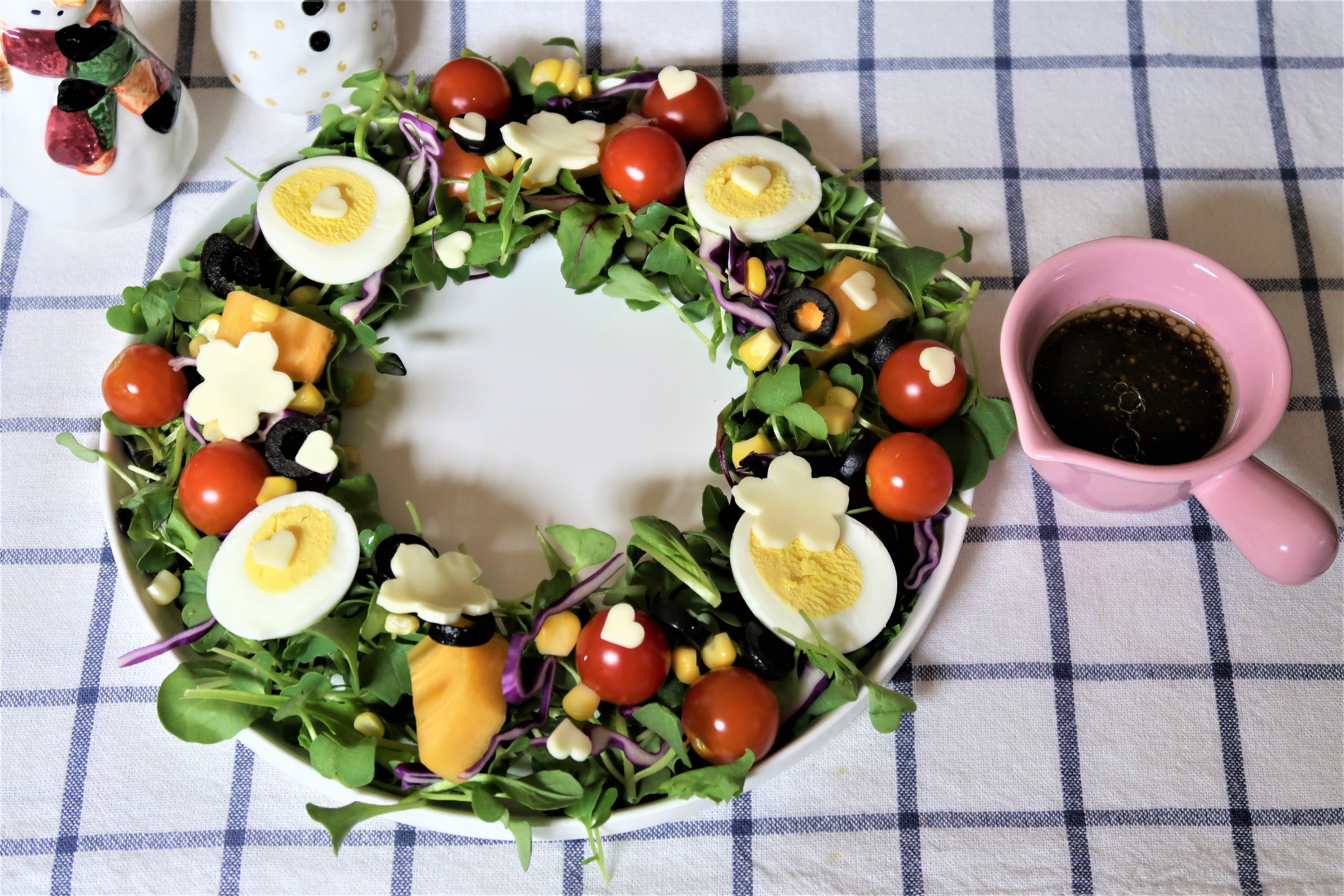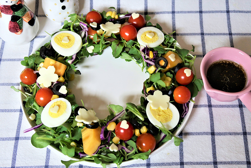또한 환영이라는 의미도 있어서 크리스마스에 사람들을 집으로 초대하면서 환영한다는 의미로 걸어두기도 합니다. 오늘은 크리스마스 리스 샐러드를 만들어 볼게요.
