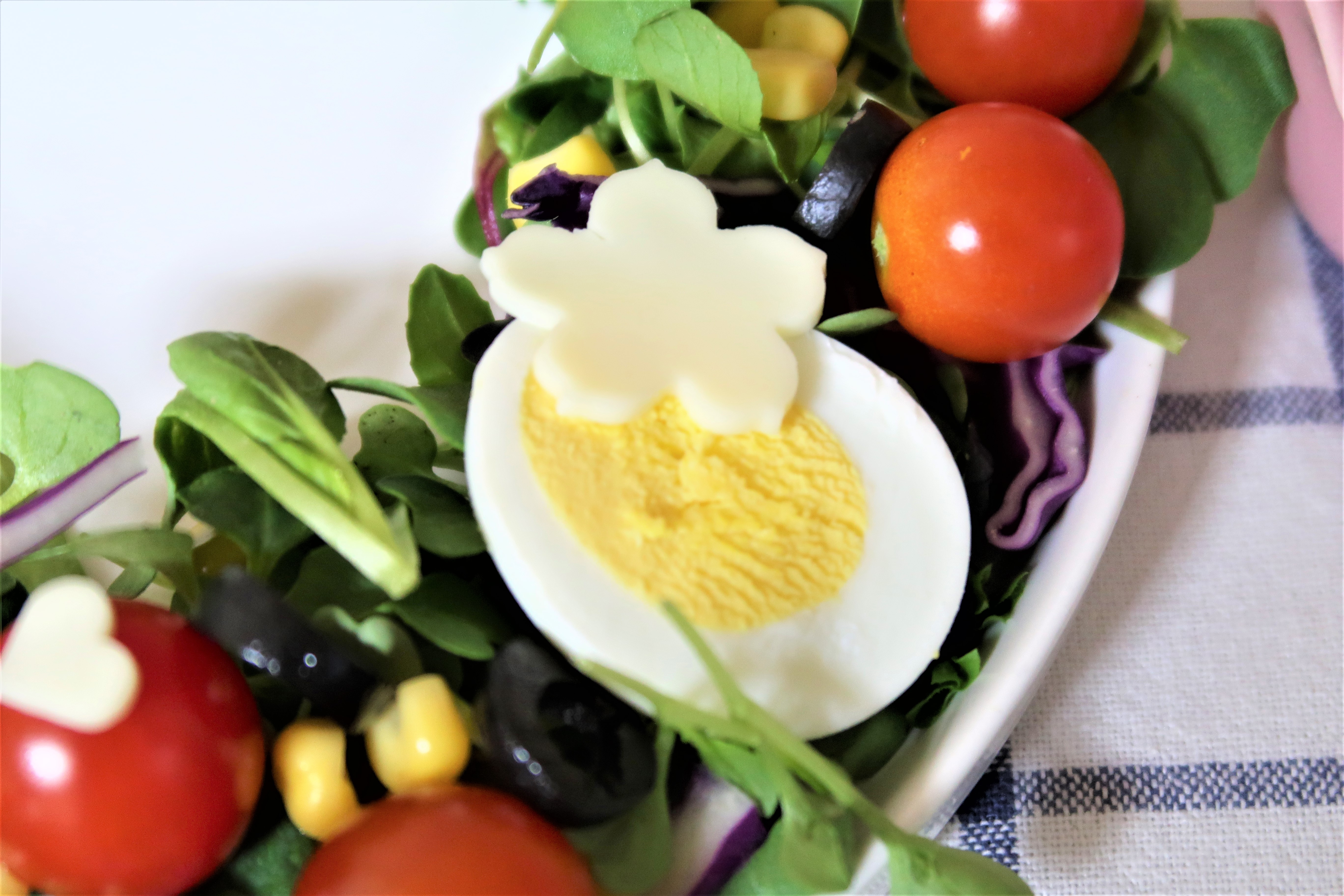 적양배추채, 방울토마토, 단감, 삶은 달걀 등을 올려주세요.
