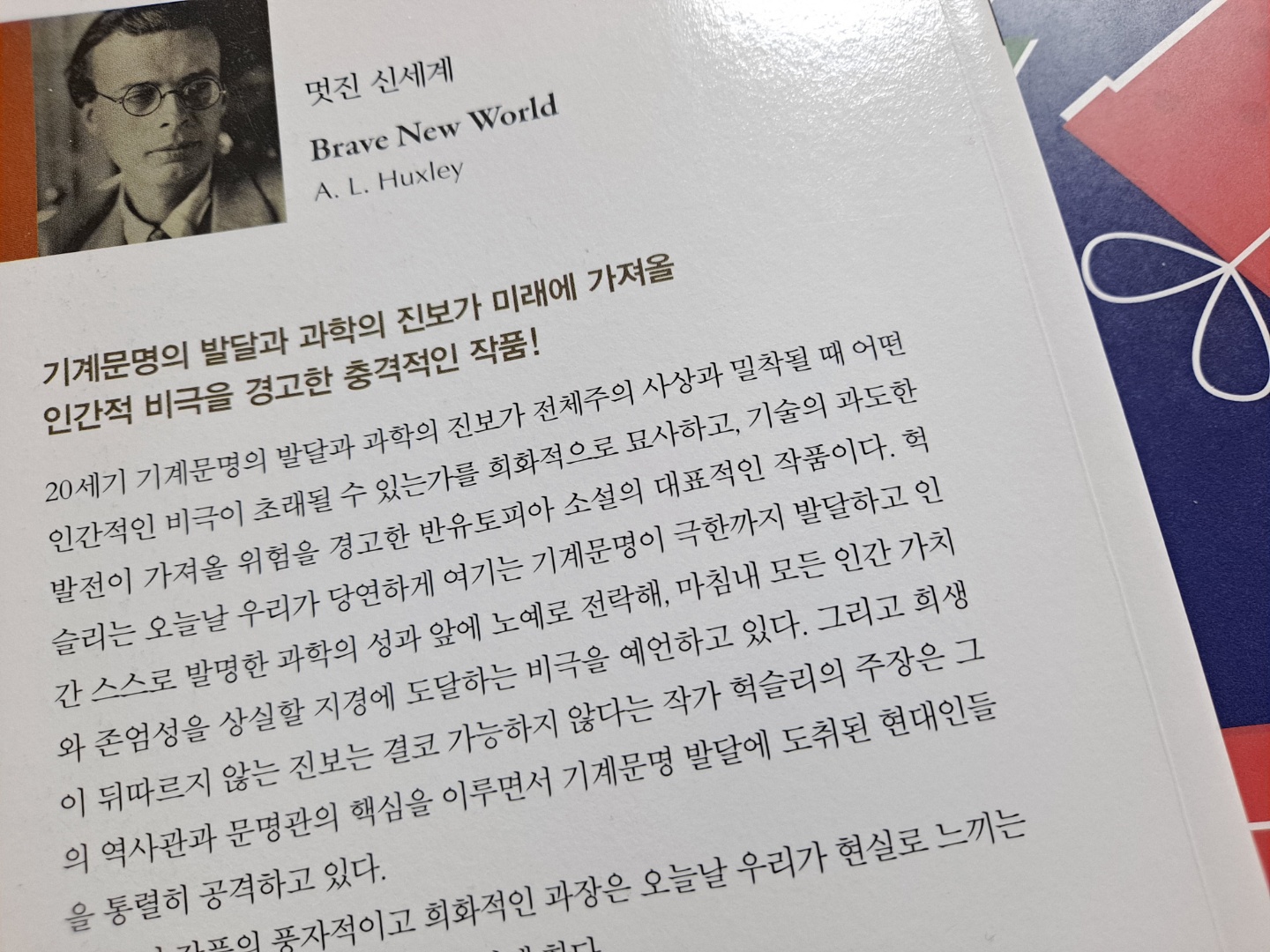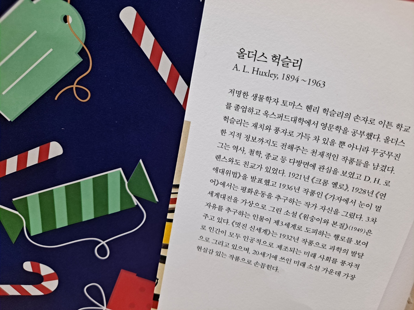 올더스 헉슬리(1894~1963)의 소설을 처음으로 읽었습니다. 헉슬리는 옥스퍼드대학에서 영문학을 전공한 작가로 재치 있고 풍자적인 소설을 많이 썼으며 책을 통해 엄청난 양의 지적 정보까지 독자들에게 전달해주는 천재적인 작품을 남긴 것으로 유명합니다.