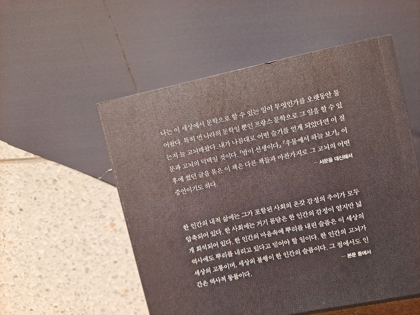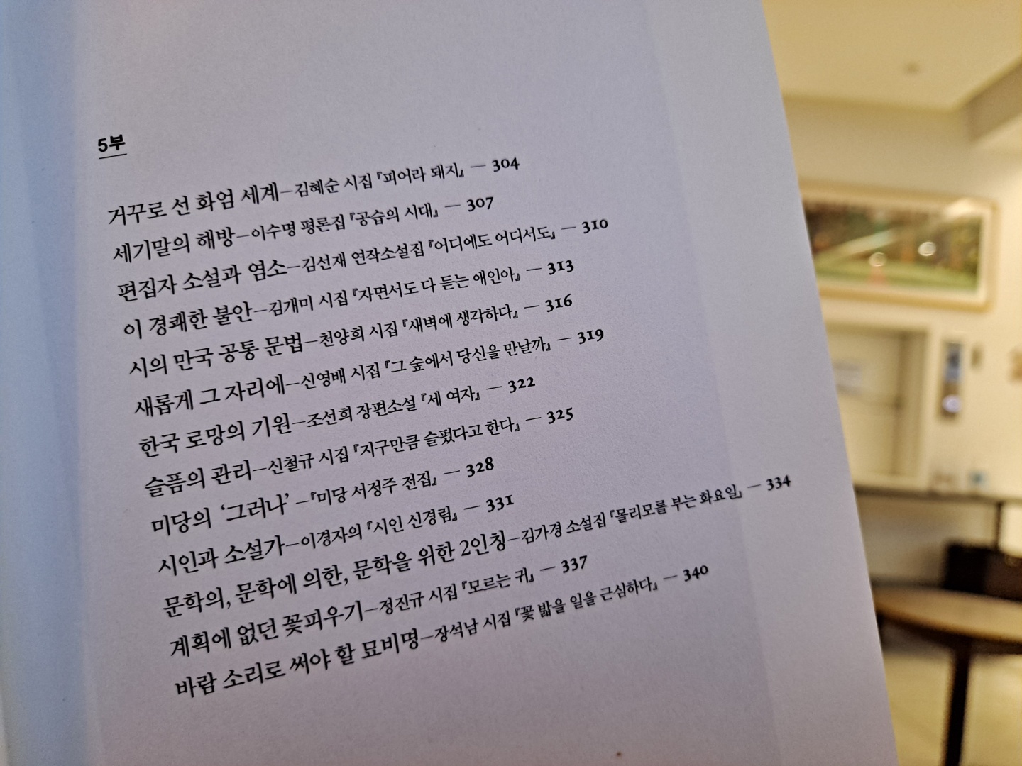 글의 뒷부분에 소개된 우리나라 작가들에 대한 짧은 평론도 인상적이었어요. 특히 김혜순 시인, 김선재 소설가, 김개미 시인, 신영배 시인, 김가경 소설가, 장석남 시인에 대한 평론은 짧지만 매우 신선합니다. 오래도록 기억에 남는 작품을 쓴다는 것이 얼마나 힘들고 어려운 일인지 알기에 한 편의 좋은 작품을 읽고 난 후의 감동은 오래 마음속에 머무르나 봅니다.
