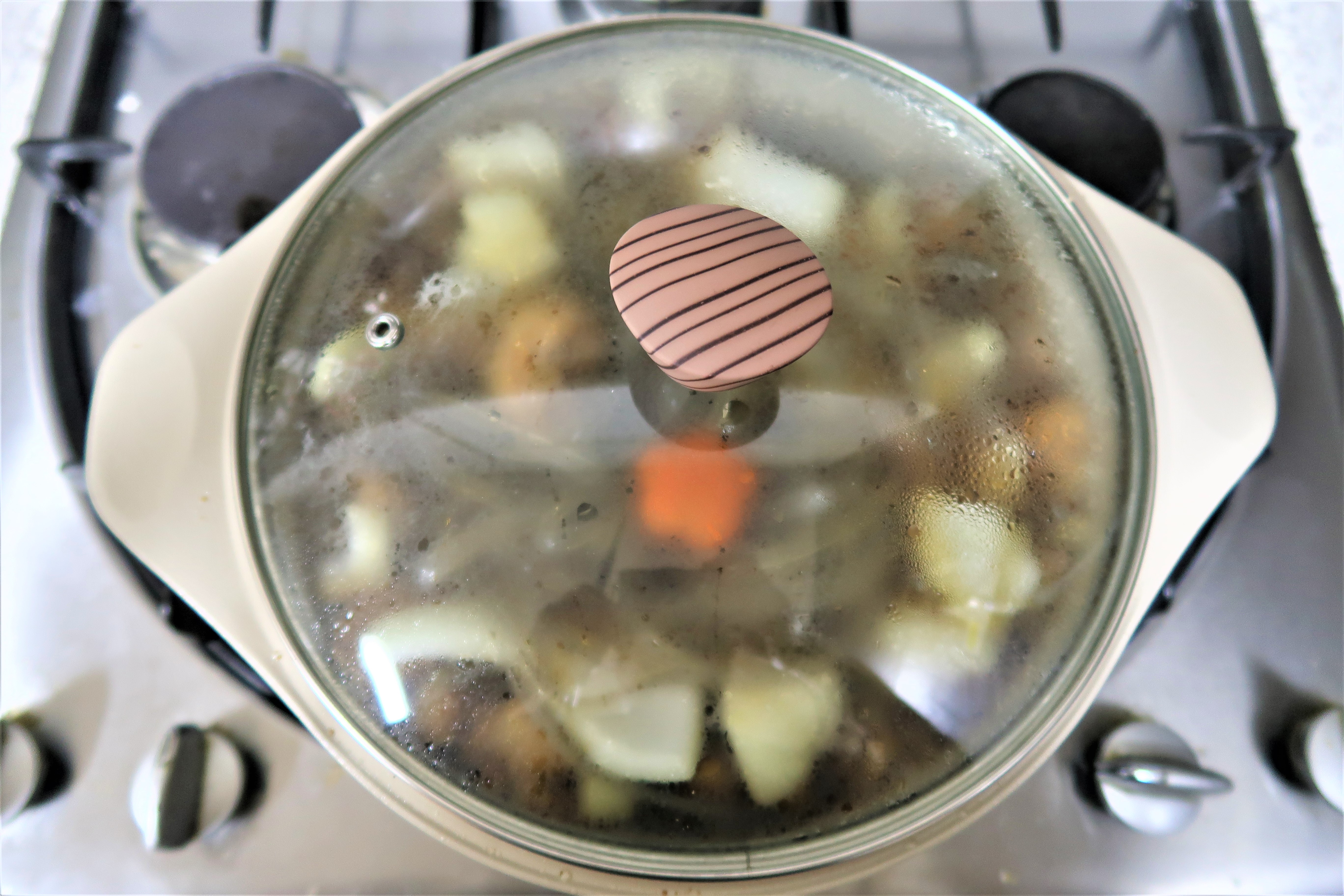 감자와 당근을 넣고 뚜껑을 덮고 10분간 다시 끓여주세요.