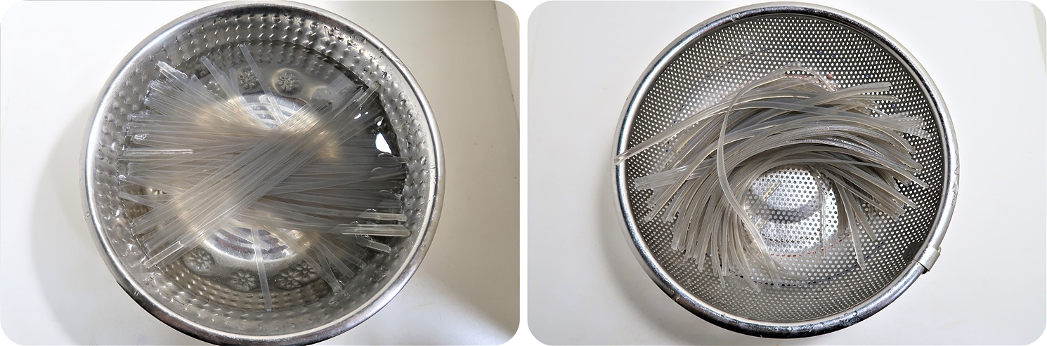 찬물이나 미지근한 물에 납작당면을 30분 정도 불려주세요.