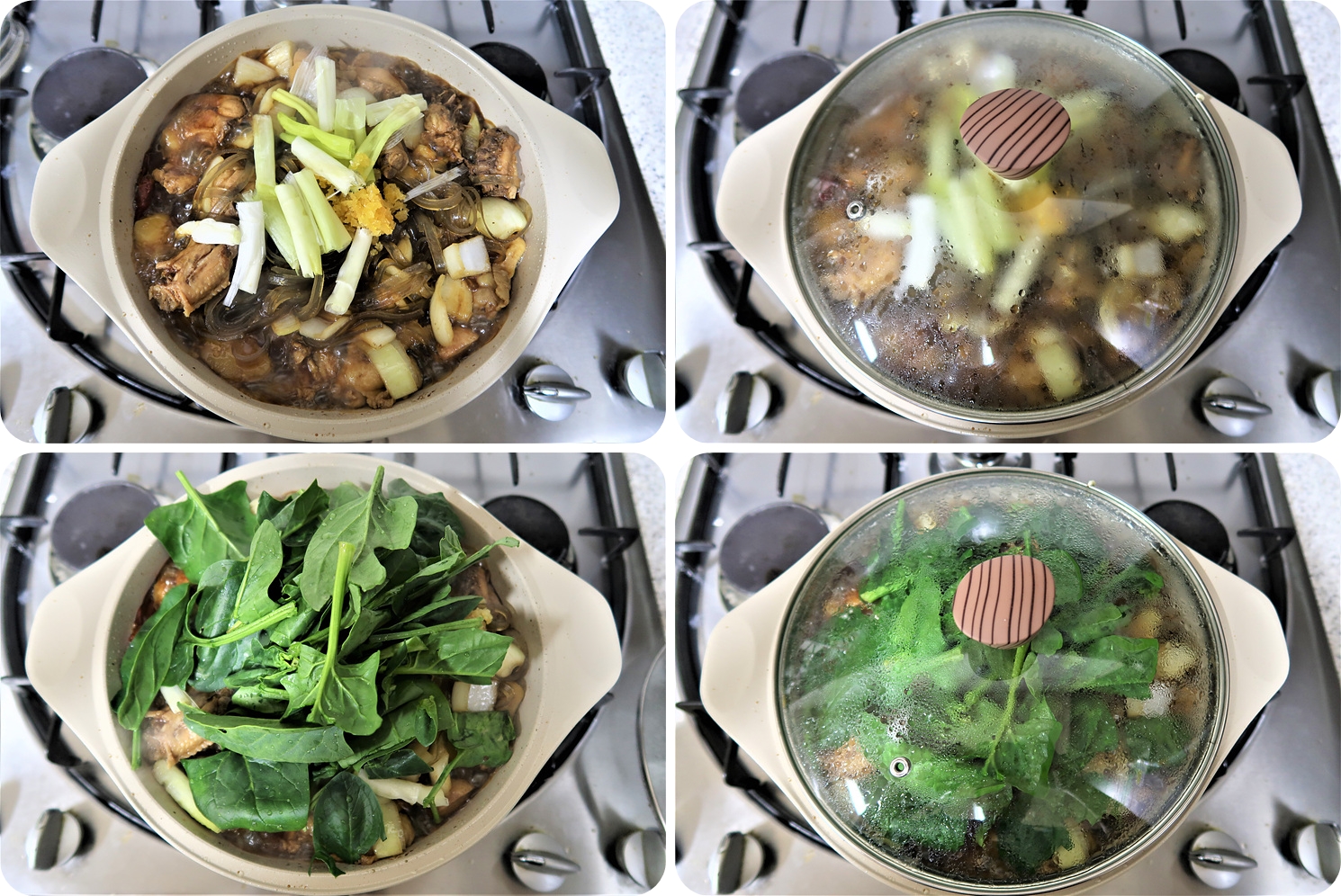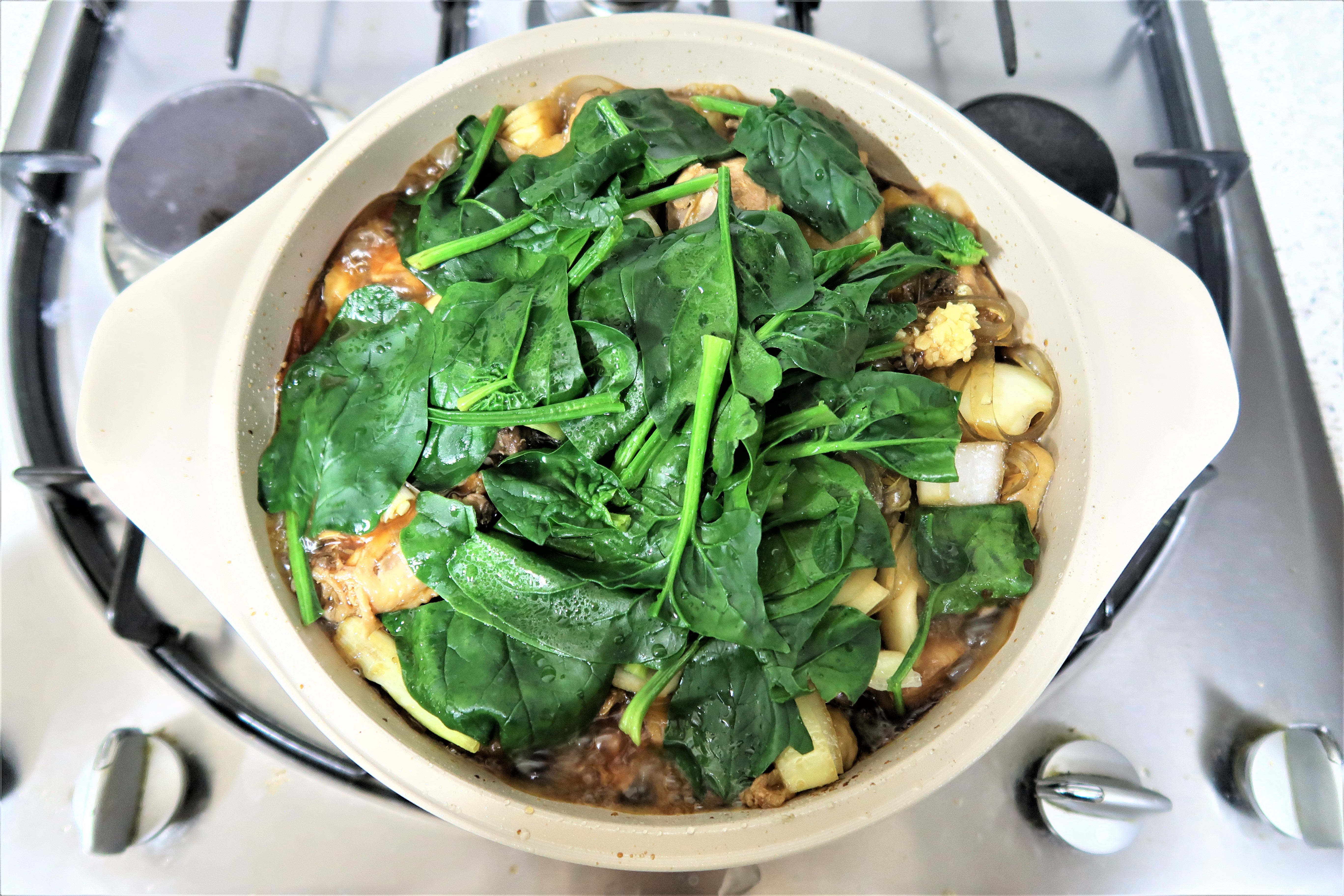 다시 시금치를 넣고 뚜껑을 덮어서 1분간 끓여주세요.