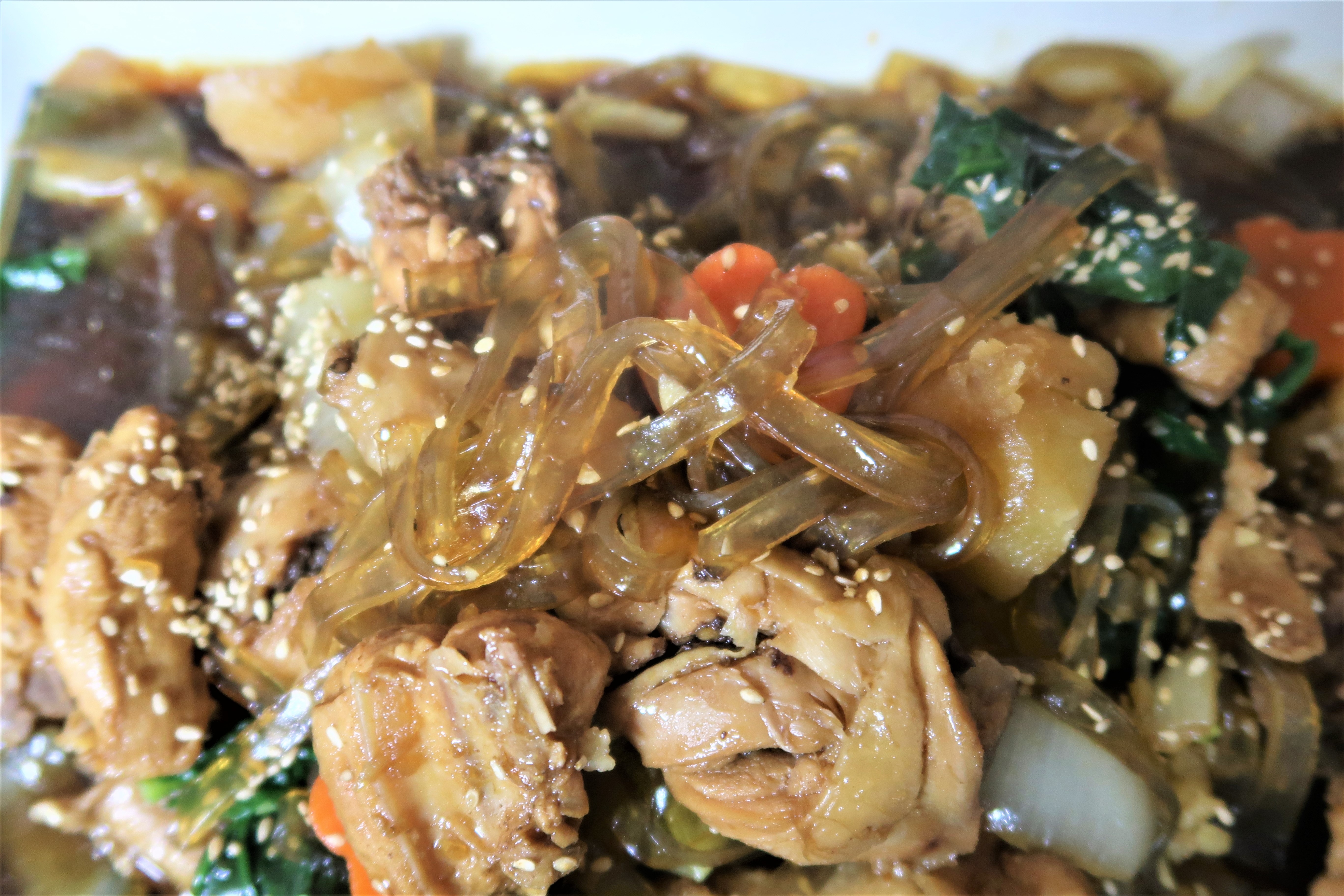당면이 양념 소스를 약간 먹어버려요.