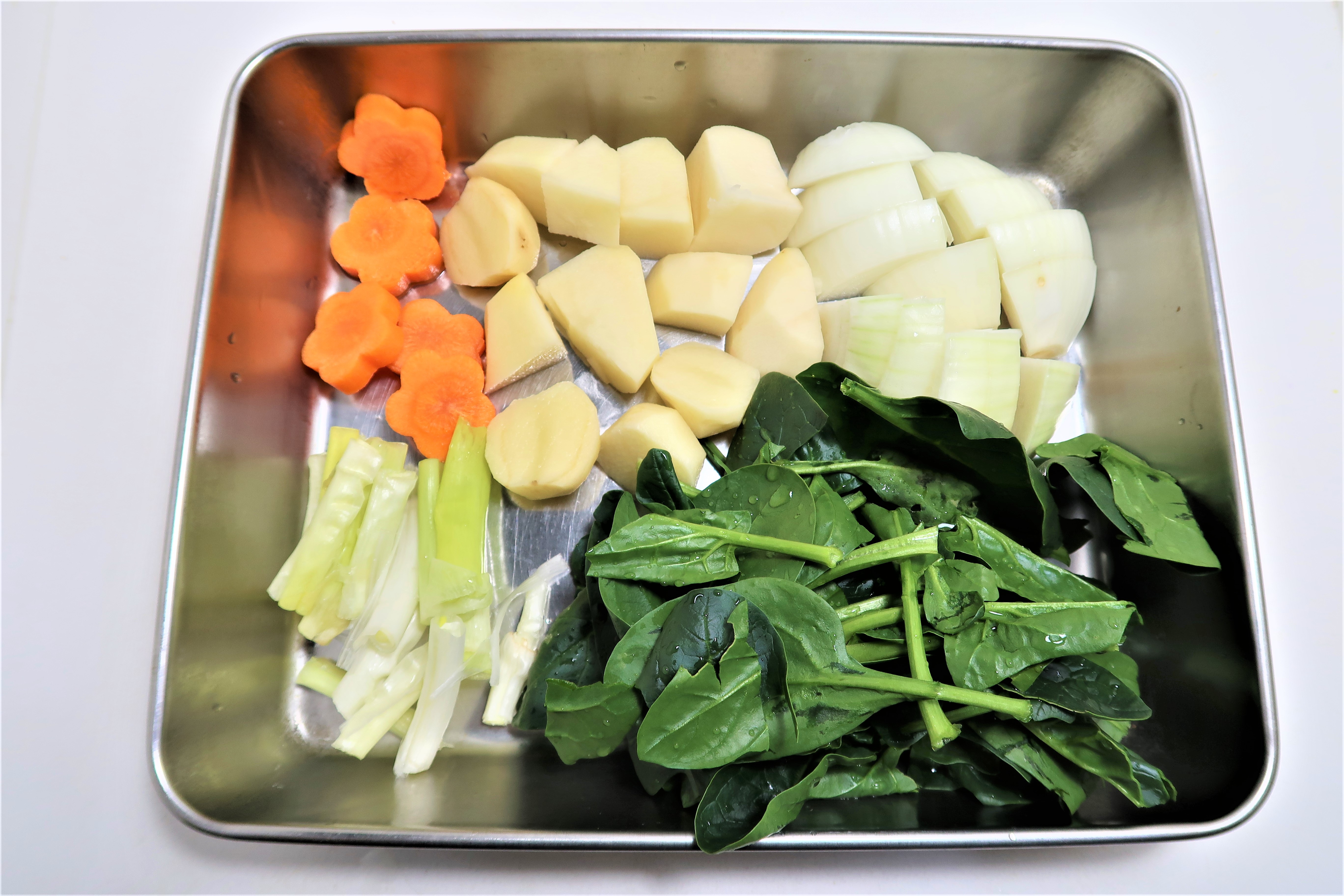감자와 양파는 큼직하게 썰어주세요. 당근은 꽃모양으로 찍어주세요.