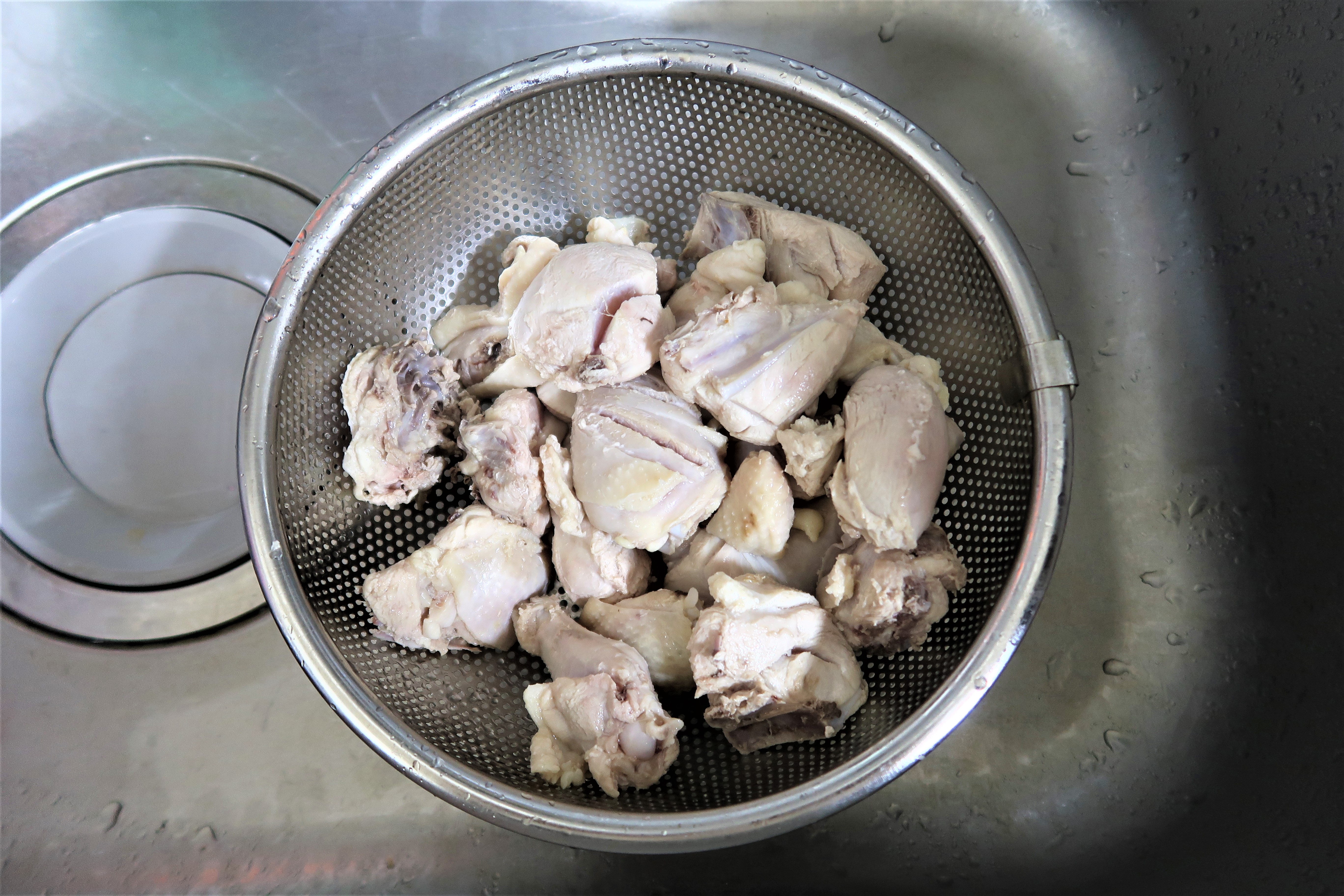 끓는 물에 닭을 한번 데쳐주세요. 기름기도 제거하고 깔끔해져서 좋아요.