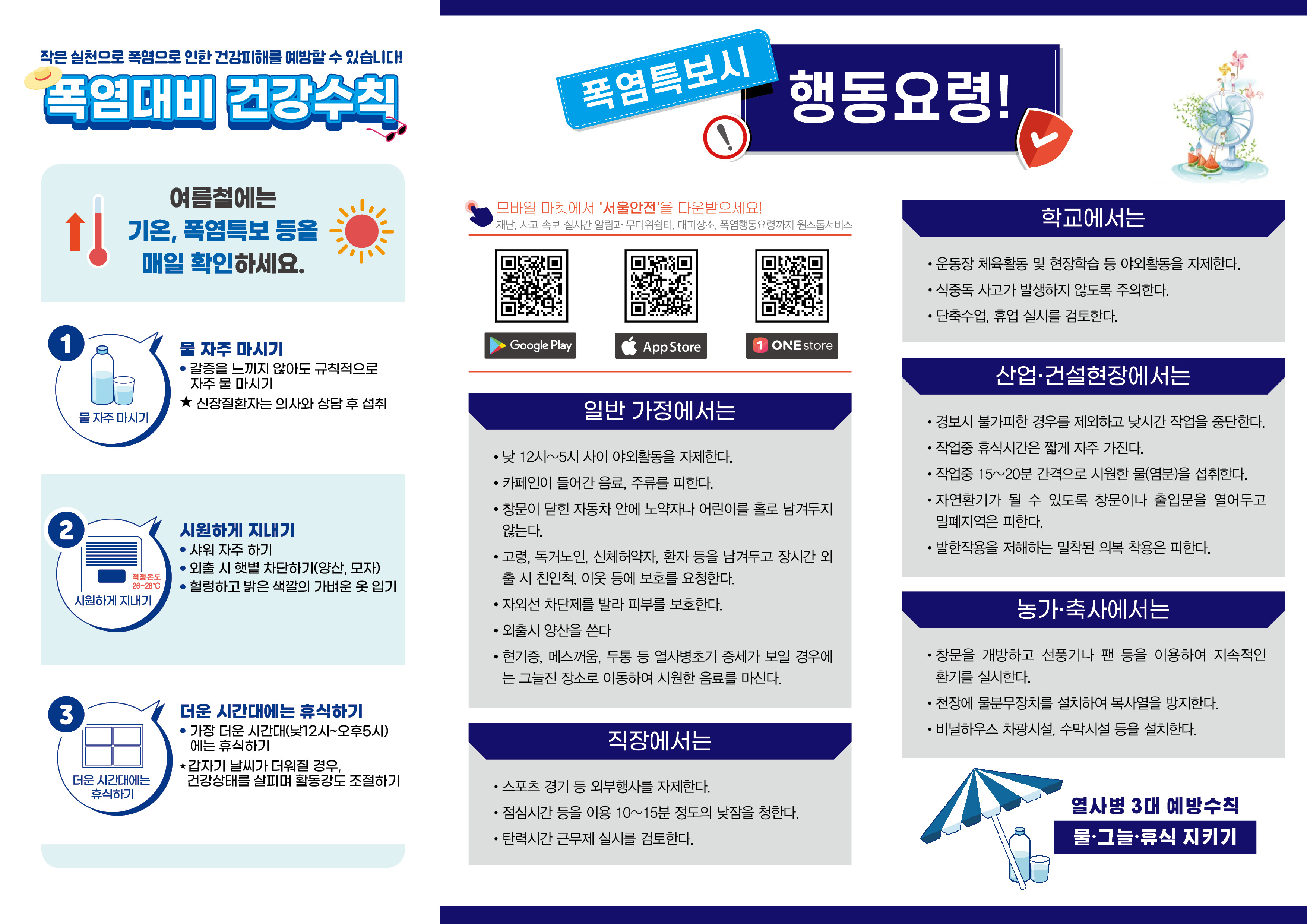 - 갑자기 날씨가 더워질 경우, 건강상태를 살피며 활동강도 조절하기