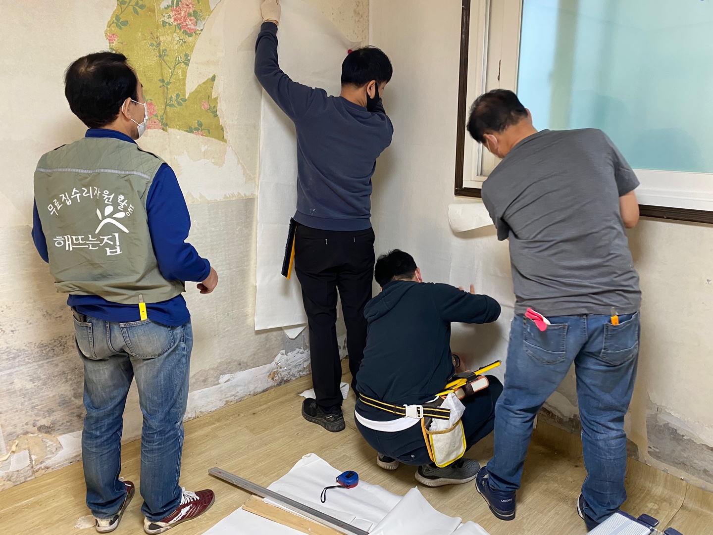 도배된 모습을 보고 만족해하시는 어르신을 보고 '해뜨는 집' 봉사자 여러분이 뿌듯해 하셨습니다. 따뜻한 손길을 보내주신 '해뜨는 집' 여러분 감사합니다.